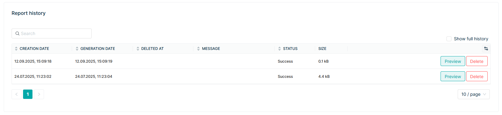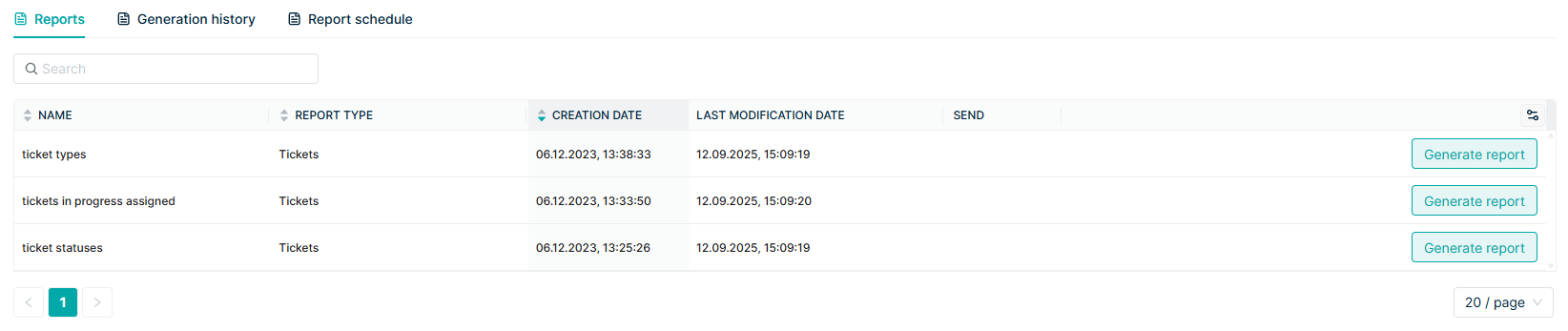 Every generated report is stored in the system. That means you can: