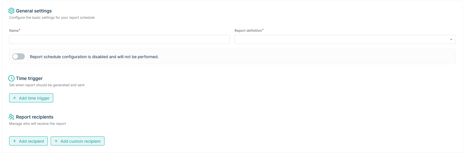 set frequency (e.g., every Monday at 08:00),